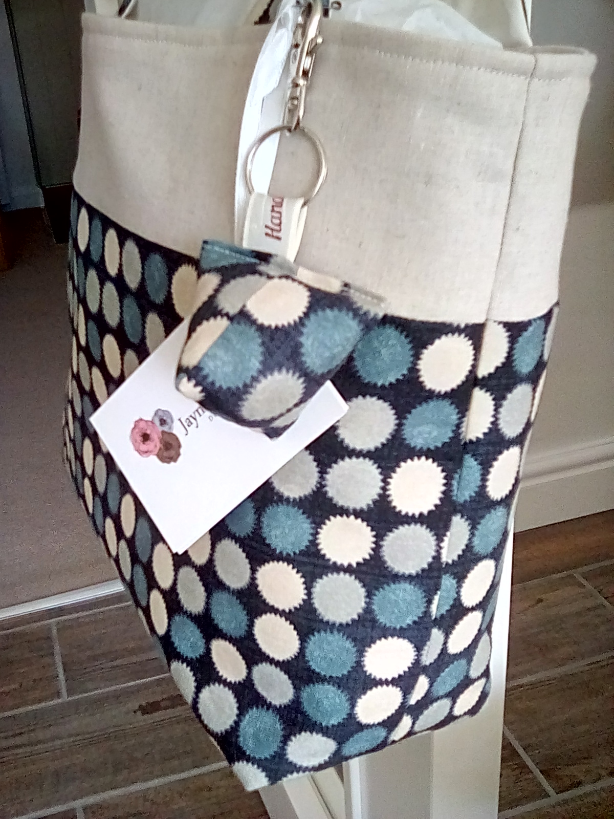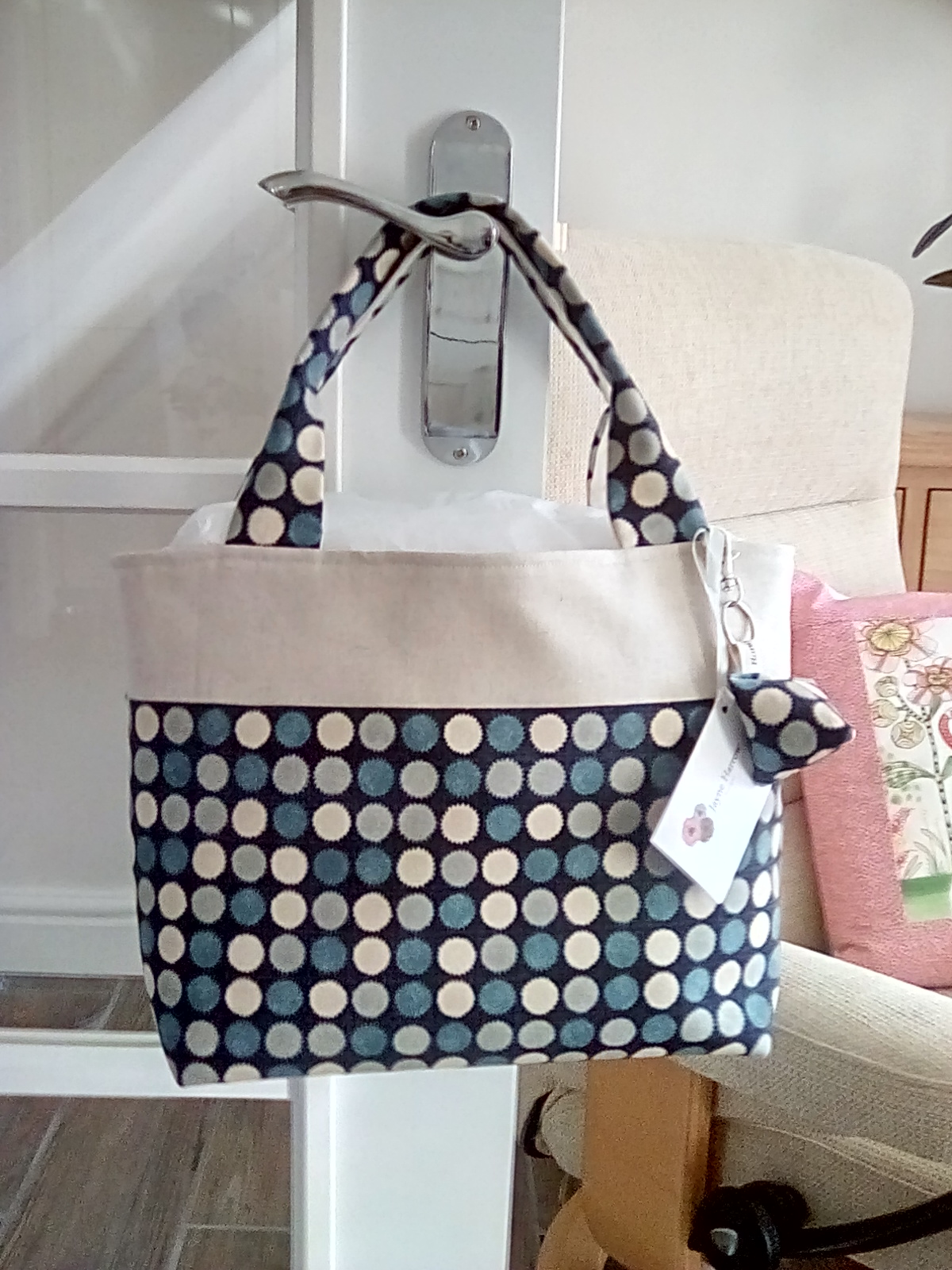 Gracie handbag in a dark blue spot cotton fabric.